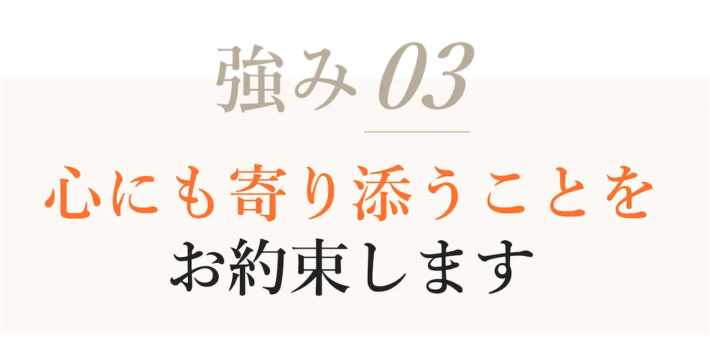 私は必ず体の痛みやご病気、悩みや不安と真剣に向き合うことをお約束します。