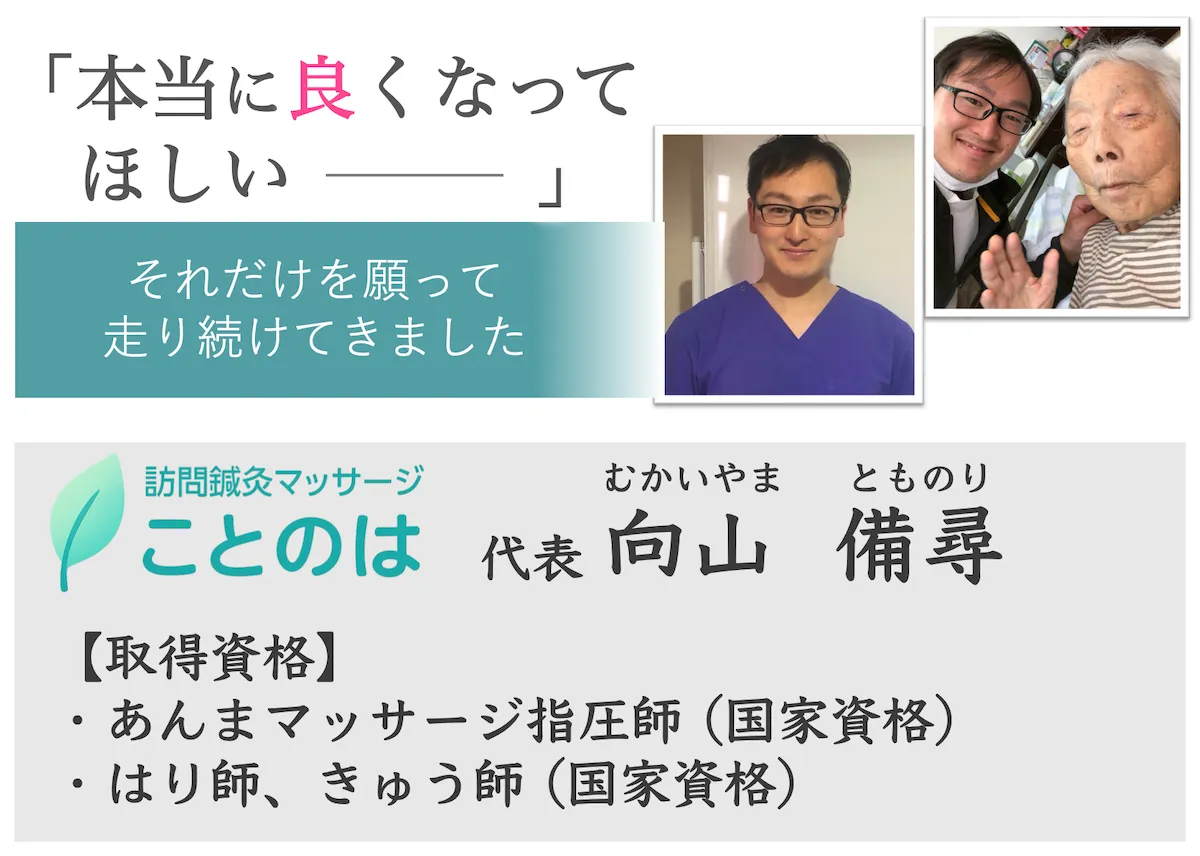 『訪問鍼灸マッサージ ことのは』は大阪市を中心に活動している事業所です。